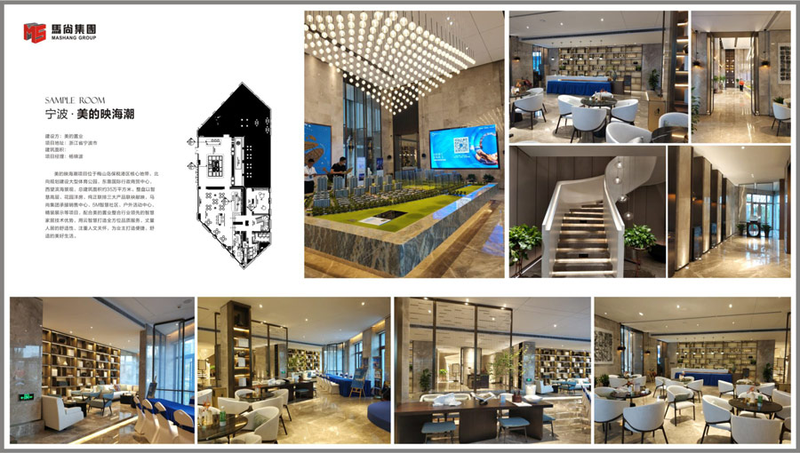 美的映海潮项目位于梅山岛保税港区核心地带,北向规划建设大型体育公园,东靠国际行政商贸中心,西望滨海景观,总建筑面积约35万平方米。整盘以智慧高层、花园洋房、纯正联排三大产品联袂献映,马尚集团承接销售中心、5M智慧社区、户外活动中心、精装展示等项目,配合美的置业整合行业领先的智慧家居技术优势,用云智慧打造全方位品质服务,丈量人居的舒适性、注重人文关怀,为业主打造便捷、舒适的美好生活。