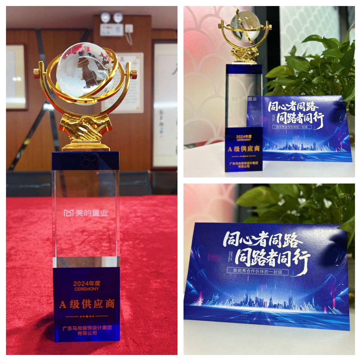 时序更替,华章日新,近日,我司荣获美的置业集团总部颁发的“2024年度A级供应商”殊荣!